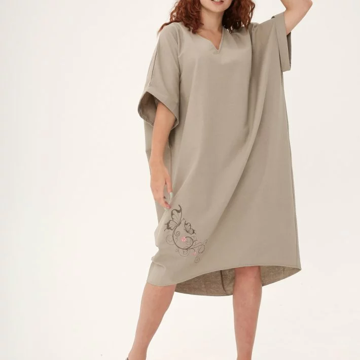 Вільна сукня з натурального льону. Рукав цільнокрійний. Знизу