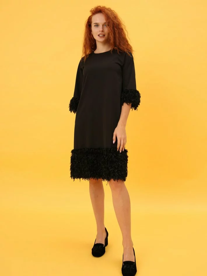 Сукня пряма, з рукавом 3/4 оформлена штучним хутром. Застібається