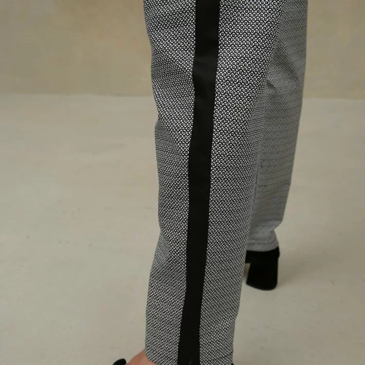 трохи звужені донизу, на широкому поясі. Штани декоровані лампасами