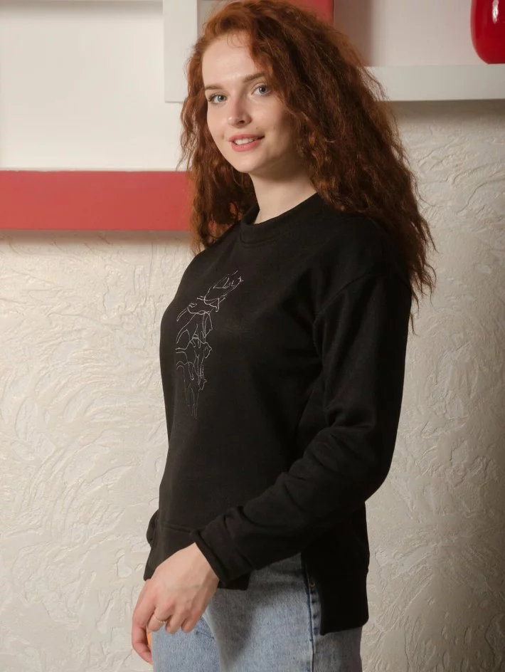 Толстовка оверсайз крою з оригінальним низом виробу та