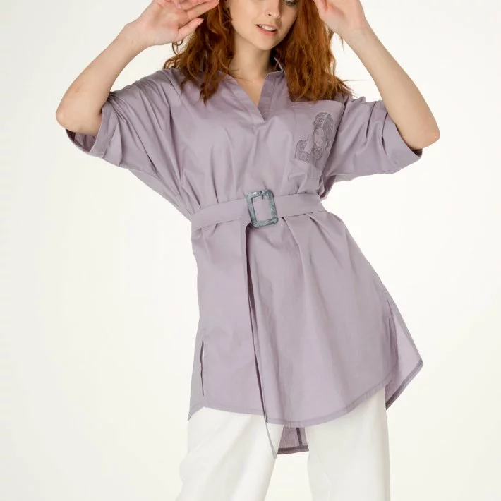 Туніка супер-оверсайз з дизайнерською вишивкою на кишені, у