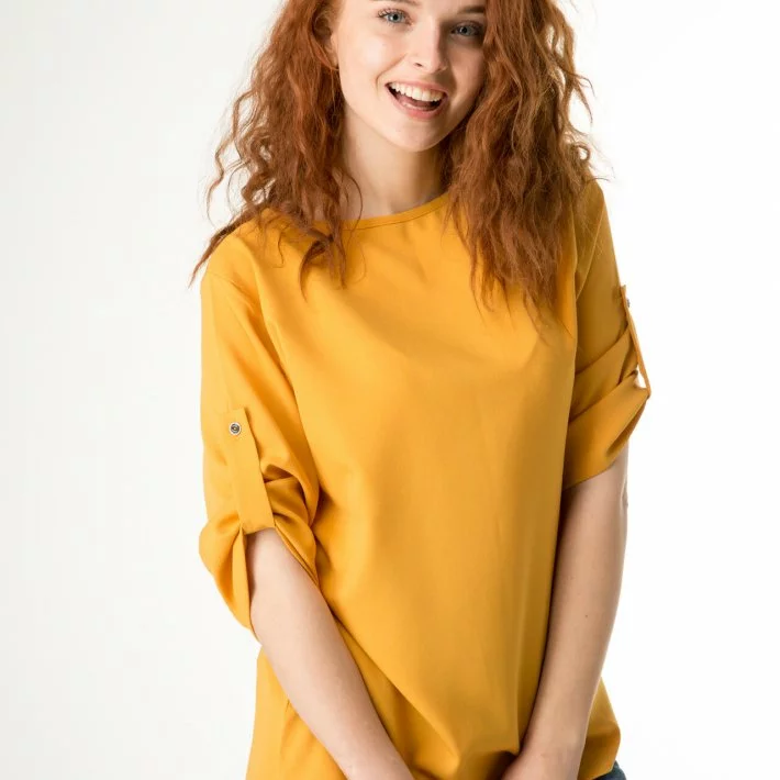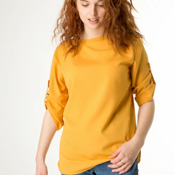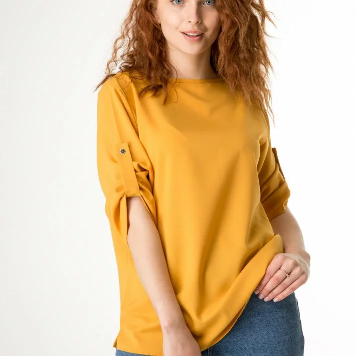 Жовта базова блузка з жатки 230147-1, 56/58 (230147-1)