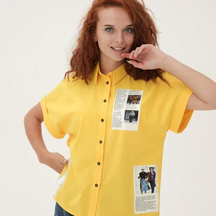 Жовта легка сорочка Модна газетка 230173-3, 44/46 (230173-3s4446)