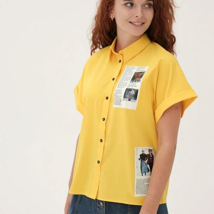 Жовта легка сорочка Модна газетка 230173-3, 48/50 (230173-3s4850)